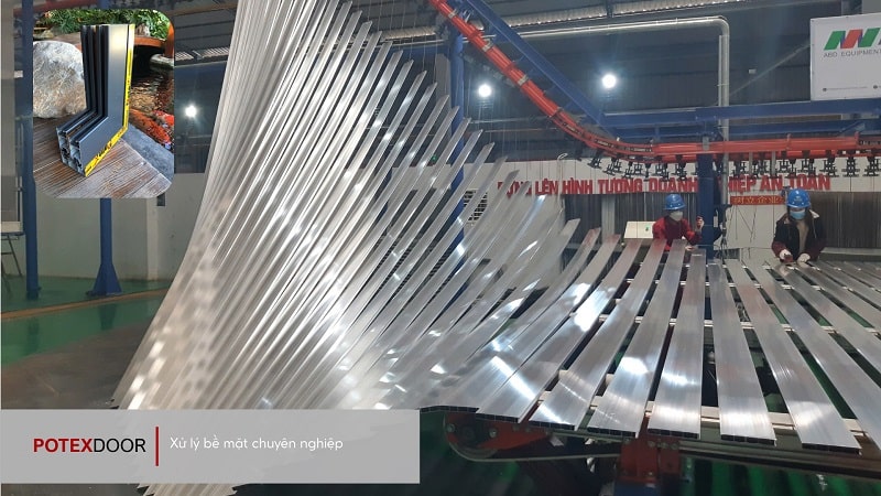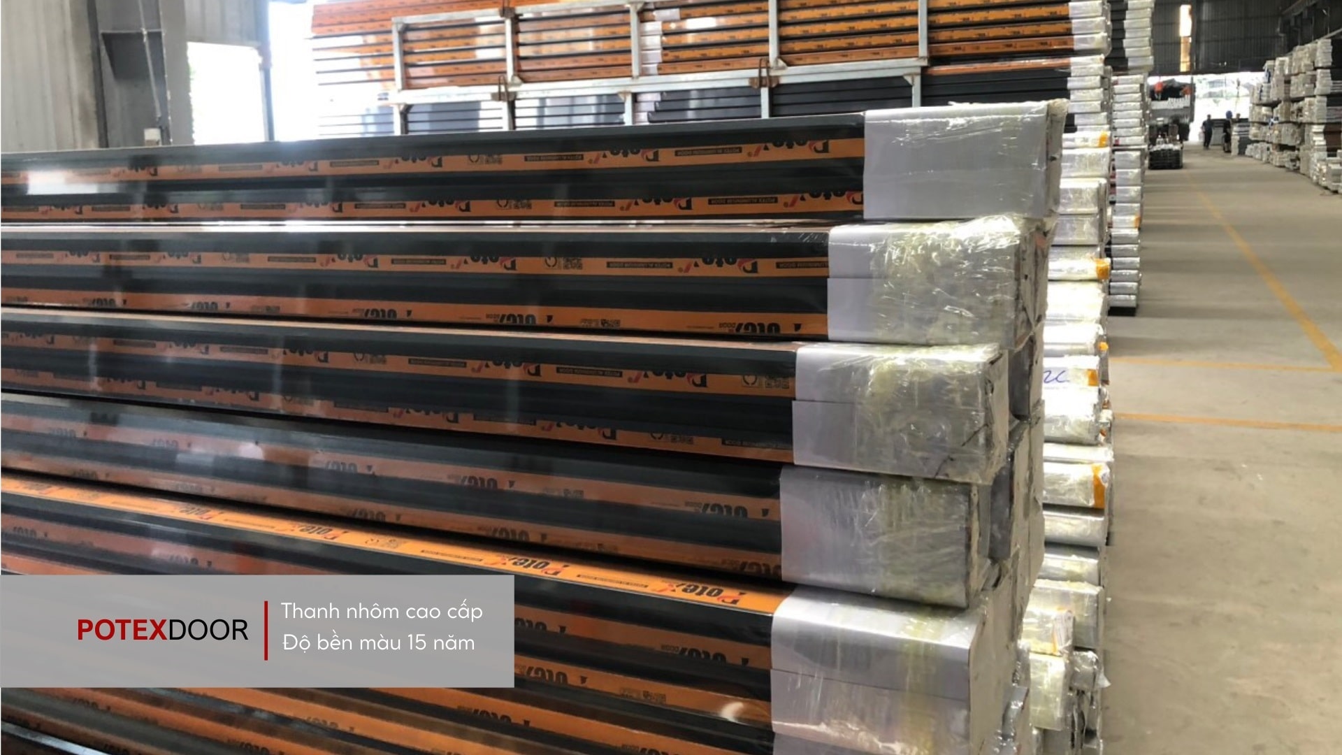 PotexDoor là thương hiệu nhôm định hình cao cấp, được phát triển dành riêng cho ngành cửa Việt Nam. Toàn bộ sản phẩm được sản xuất trên dây chuyền hiện đại, sử dụng bileet đạt chuẩn 6063-T5 cùng lớp sơn tĩnh điện metallic PPG (Mỹ) – bảo hành màu 15 năm.Bề mặt trơn bóng, bền màu và khả năng chống oxy hóa vượt trội trong mọi điều kiện khí hậu.